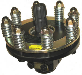 1 3/8" Round bore female (3/8" key) / 1 3/8" x 6 spline male. |