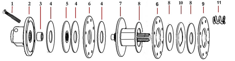 200mm (8") 6 PLATE COMBINED FREEWHEEL - SAFETY CLUTCH COMPONENTS